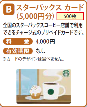 レッツ中央 > クオカード、図書カード、ジェフグルメカード、東武動物公園バスほか > スターバックスカード(5,000円分)